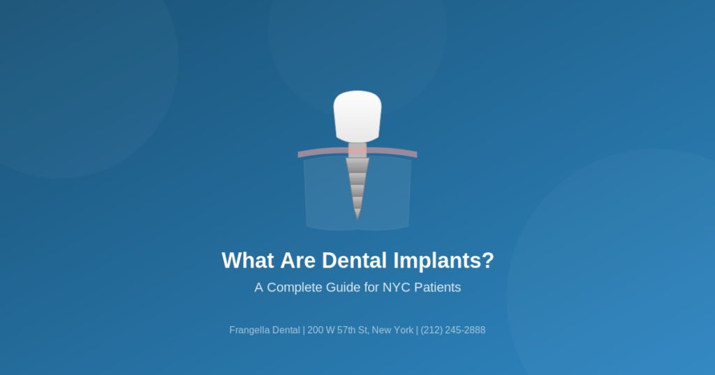 Ready to find out if dental implants are right for you? Contact Frangella Dental today at (212) 245-2888 or visit our website to schedule your consultation. We’re conveniently located at 200 W. 57th Street, Suite 1405, in Midtown Manhattan—just steps from Columbus Circle.